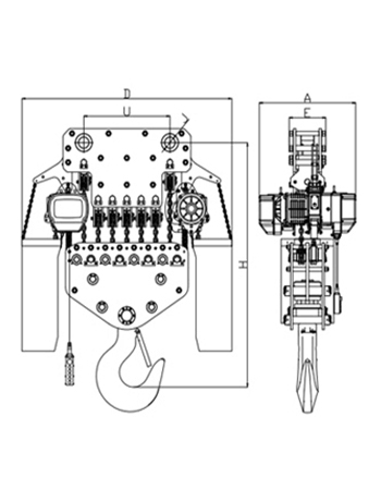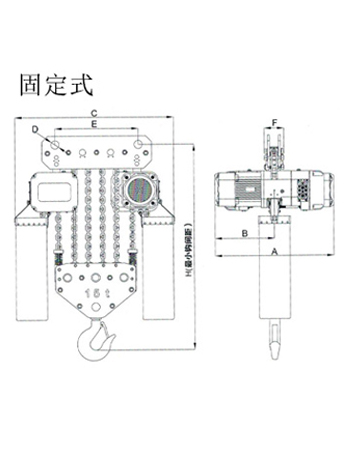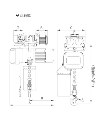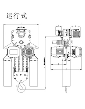 | 運(yùn)行式環(huán)鏈電動葫蘆(30T-50T)尺寸參數(shù): | ||||||
